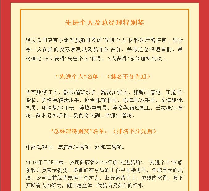 2019年度船員作品及“先進船舶和先進個人”評選結(jié)果