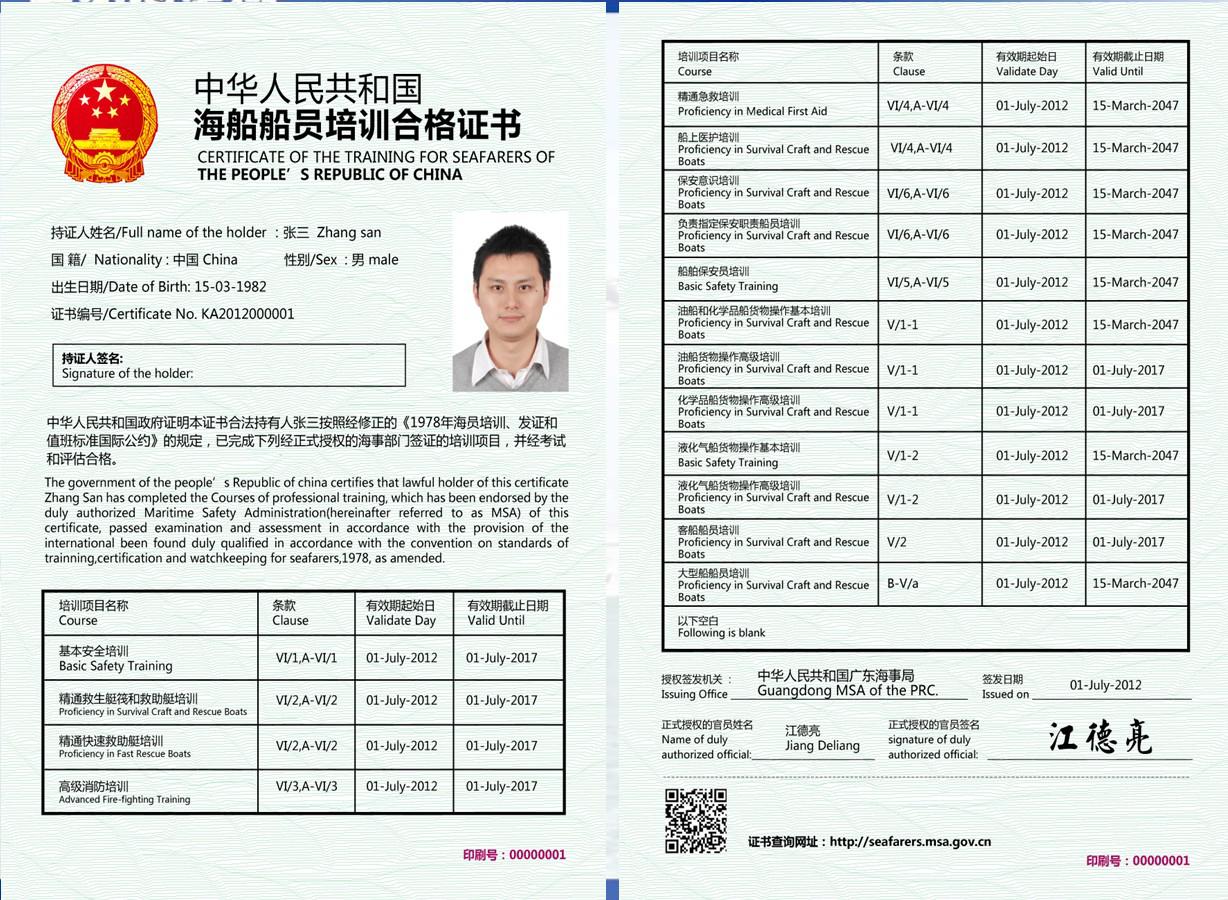 中華人民共和國(guó)海船船員培訓(xùn)合格證書